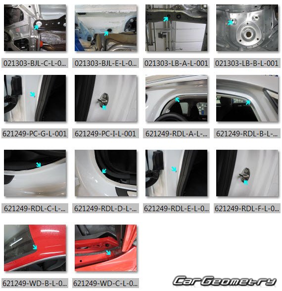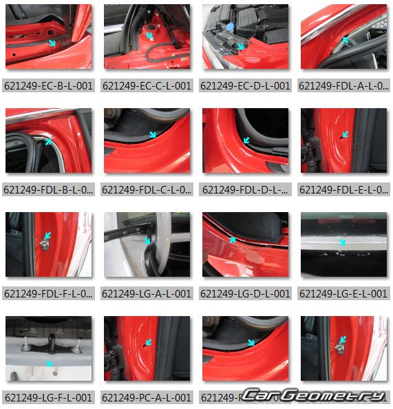 Кузовные размеры для восстановления геометрии кузова Ауди A3 LIMOUSINE 2014-2020. С помощью этих данных осуществляется проверка геометрии кузова 4DR Sedan, с последующей рихтовкой поврежденных частей автомобилей Ауди A3 Седан.