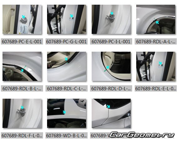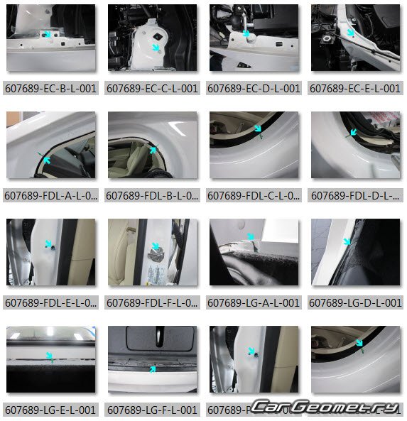 Кузовные размеры Lincoln MKZ 2013-2016 для восстановления геометрии кузова автомобилей. С помощью этих данных осуществляется проверка геометрии кузова, с последующей рихтовкой поврежденных частей автомобилей Линкольн МКЗ.