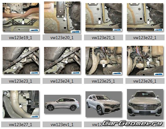Заводское руководство содержит контрольные размеры Фольксваген Туарег (CR7) 2018-2025 Body Repair Manual и включает описание замены различных элементов кузова (CR7), контрольные точки геометрии кузова Volkswagen Touareg третьего поколения.