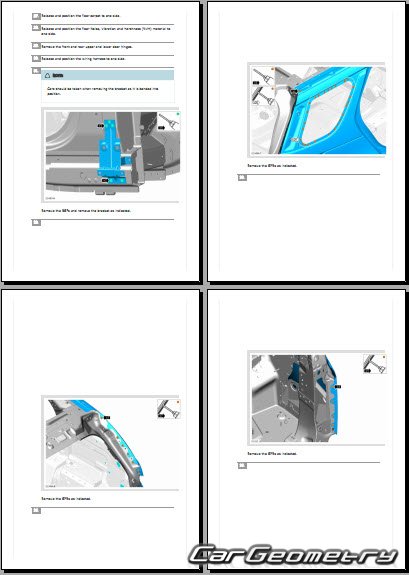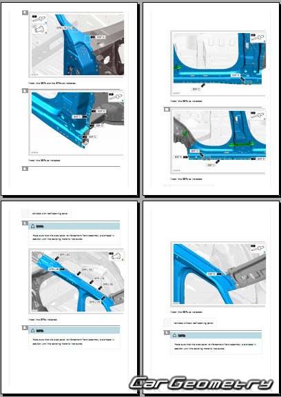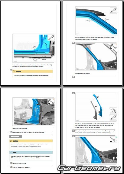 Информация по геометрическим размерам кузова Land Rover Discovery 5, контрольным точкам, изображения сечений кузовных элементов, применяемым материалам, рекомендации по применимым типам, методам, материалам и местам сварки; места и материалы для нанесения шовных, звукоизолирующих, антикоррозионных мастик; места и направления резки кузовных элементов для последующей установки новых; типы материалов интерьера, обозначение и расшифровка.