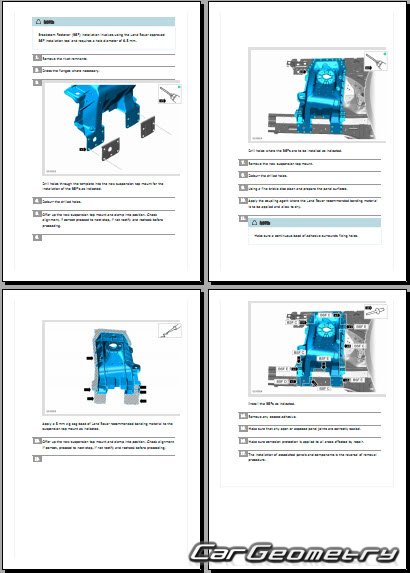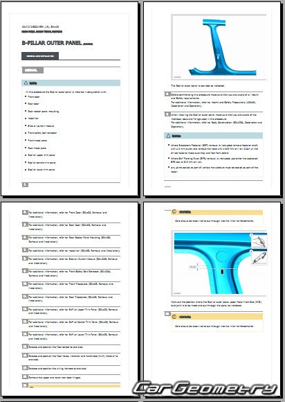 Заводское руководство по ремонту кузова Land Rover Discovery 5 (L462) 2017-2026 включает описание замены различных элементов кузова и кузовные размеры, контрольные точки геометрии кузова Ленд Ровер Дисковери пятого поколения.