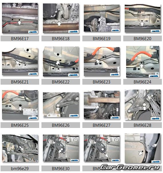 Кузовные размеры для восстановления геометрии кузова BMW X4 (F26) 2014–2018. С помощью этих данных осуществляется проверка геометрии кузова BMW F26, с последующей рихтовкой поврежденных частей БМВ Икс4.