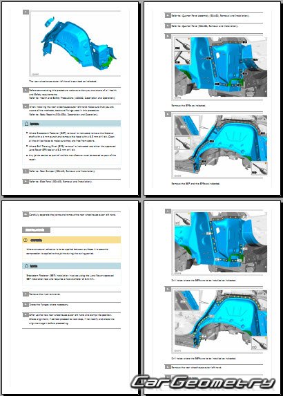 Руководство по кузовным работам Range Rover Velar (L560) 2017-2024 Body Repair Manual на английском языке содержит 490 страниц исключительно полезной и необходимой информации для мастеров, которые проверяют геометрию кузова после ДТП и хотят выполнить восстановление Рендж Ровер Велар согласно рекомендациям завода изготовителя.