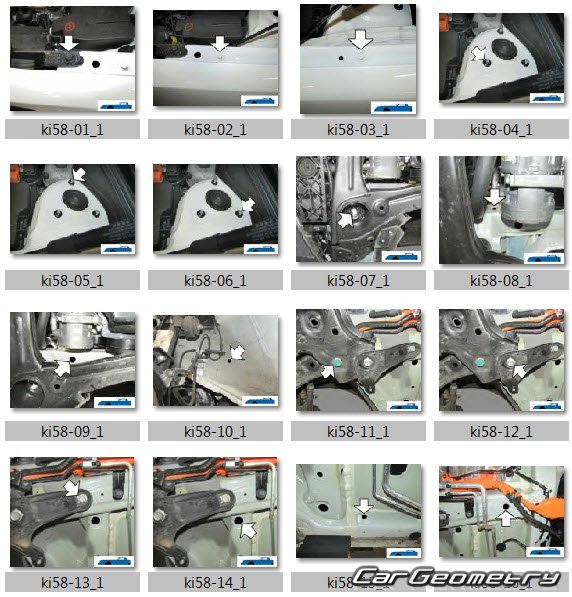Кузовные размеры для восстановления геометрии кузова Kia Sorento (MQ4) с 2021 (гибридные версии HEV и PHEV). С помощью этих данных осуществляется проверка геометрии кузова, с последующей рихтовкой поврежденных частей Киа Соренто гибрид.