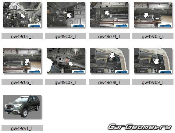 Заводское руководство по ремонту кузова на английском языке Haval H9 2015-2022 Body dimensions, стендовые размеры кузова и контрольные точки геометрии Хавал H9.