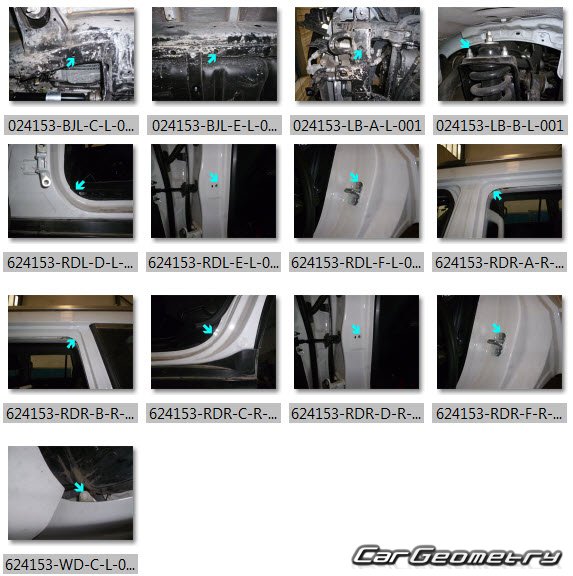 Кузовные размеры для восстановления геометрии кузова автомобилей Haval H9 2015-2022. С помощью этих данных осуществляется проверка геометрии кузова, с последующей рихтовкой поврежденных частей автомобилей Хавел H9.