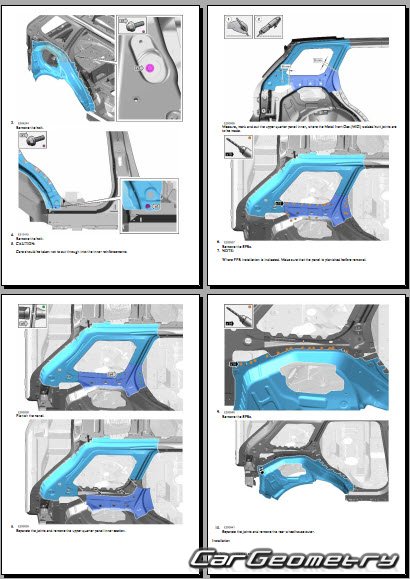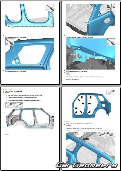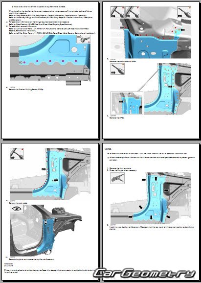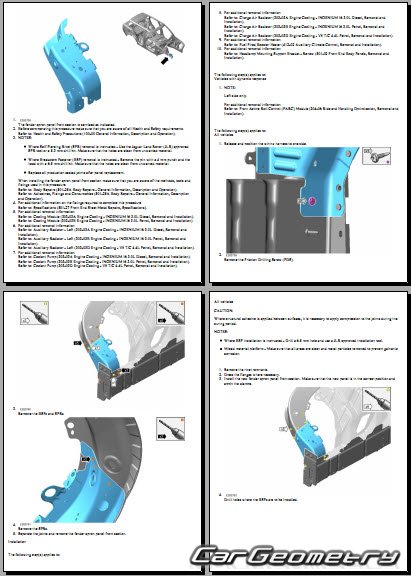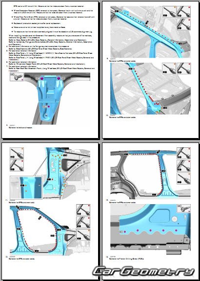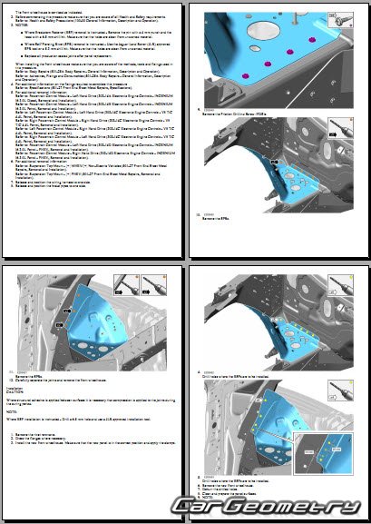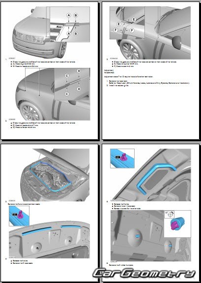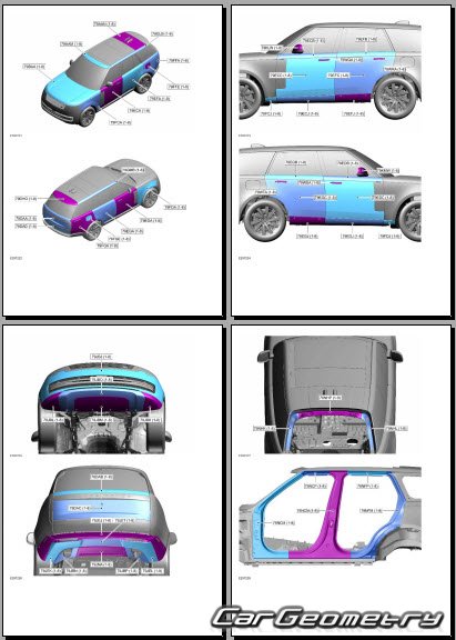 Руководство по кузовным работам Range Rover (L460) 2022-2028 Body Repair Manual на английском языке содержит 1150 страниц исключительно полезной и необходимой информации для мастеров, которые проверяют геометрию кузова после ДТП и хотят выполнить восстановление Рендж Ровер Л460 согласно рекомендациям завода изготовителя.