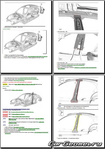 Заводское руководство по ремонту кузова Cadillac CT4 2019-2026 включает кузовные размеры, контрольные точки геометрии кузова. С помощью этих данных осуществляется проверка геометрии кузова, с последующей рихтовкой поврежденных частей Кадиллак СТ4.