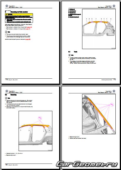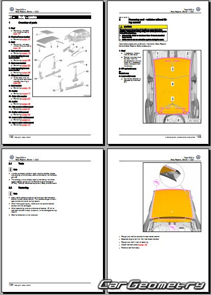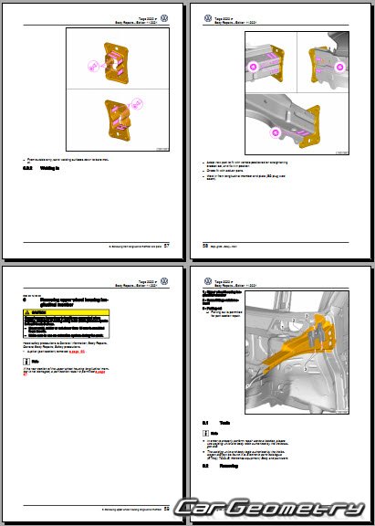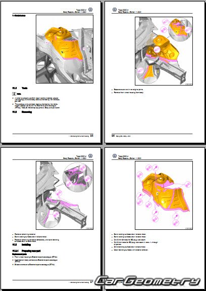 Руководство по кузовному ремонту VW Taigo (CS) 2021–2028 (Body Repairs manual) 363 страниц на английском языке. Данный сборник содержит огромное количество исключительно полезной и необходимой информации для занимающихся кузовным ремонтом самостоятельно и владельцев фирм по кузовному ремонту Фольксваген Тайго Вагон.