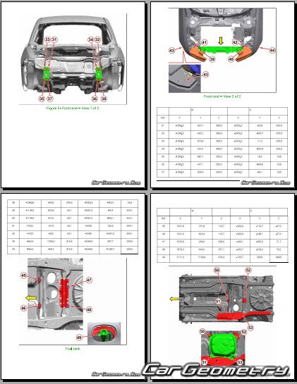 Кузовные размеры Dodge Hornet 2022-2030 для восстановления геометрии кузова. С помощью этих данных осуществляется проверка геометрии кузова, с последующей рихтовкой поврежденных частей автомобилей Додж Хорнет.