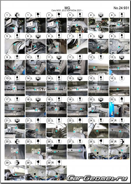 Заводское руководство на английском языке содержит размеры кузова MG5 (EP22) 2021-2027 и включает кузовные размеры, контрольные точки геометрии кузова МГ5 Вагон с 2021 года.