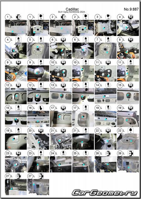 Заводское руководство по ремонту кузова Cadillac Optiq 2024-2030 включает кузовные размеры, контрольные точки геометрии кузова SUV. С помощью этих данных осуществляется проверка геометрии кузова, с последующей рихтовкой поврежденных частей Кадиллак Оптик.