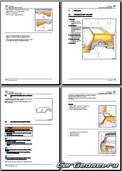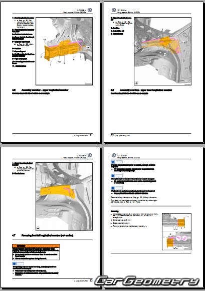 Заводское руководство содержит контрольные размеры кузова Volkswagen ID.7 Tourer 2024-2027 Body Repair Manual и включает описание замены различных элементов кузова Wagon, контрольные точки геометрии кузова Фольксваген ID. 7.