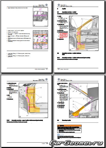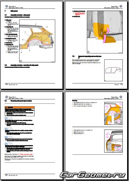Заводское руководство содержит контрольные размеры кузова Volkswagen Passat (B9) 2023-2032 Body Repair Manual и включает описание замены различных элементов кузова Wagon, контрольные точки геометрии кузова Фольксваген Пассат Б9.