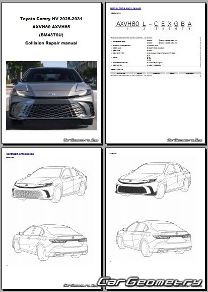 Руководство для фирменных СТО по ремонту повреждений кузова, полученных при столкновении для Toyota Camry Hybrid (AXVH80 AXVH85) 2025-2031 (Collision Repair Manual) 341 страниц на английском языке. Данный сборник содержит огромное количество исключительно полезной и необходимой информации для занимающихся кузовным ремонтом самостоятельно и владельцев фирм по кузовному ремонту автомобилей Тойота Камри гибрид девятого поколения.