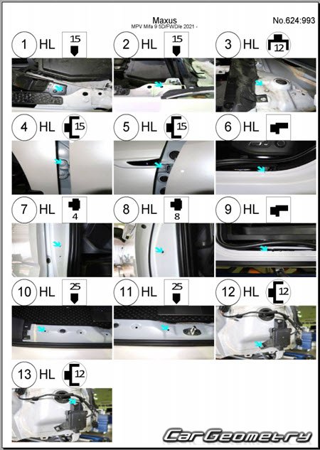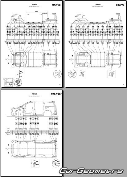 Выборка из заводской документации и стапельных систем по Maxus MIFA 9 2022-2027 Body dimensions, стендовые размеры кузова и контрольные точки геометрии Максус Мифа 9.