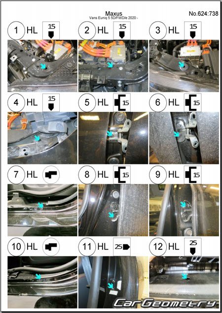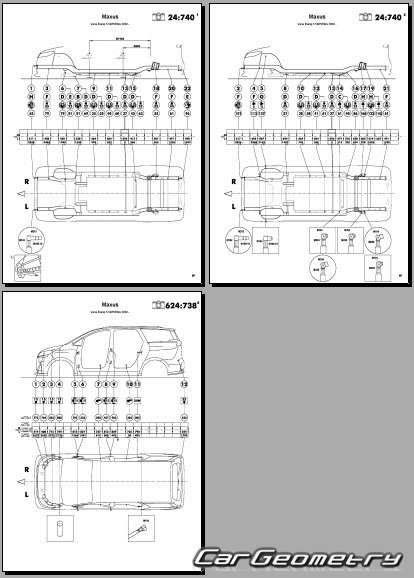 Кузовные размеры для восстановления геометрии кузова автомобилей Maxus Euniq5 2020-2025. С помощью этих данных осуществляется проверка геометрии кузова, с последующей рихтовкой поврежденных частей автомобилей Максус Еуник5.