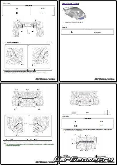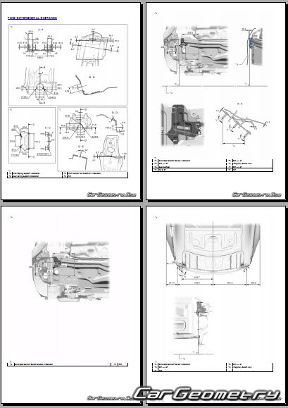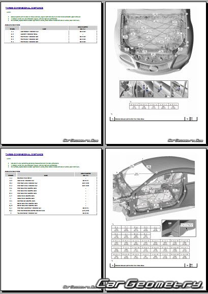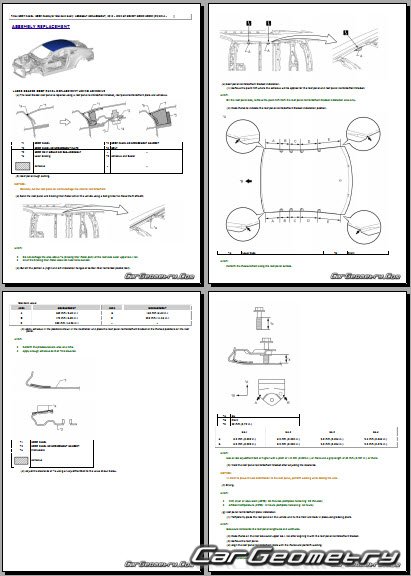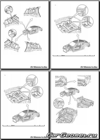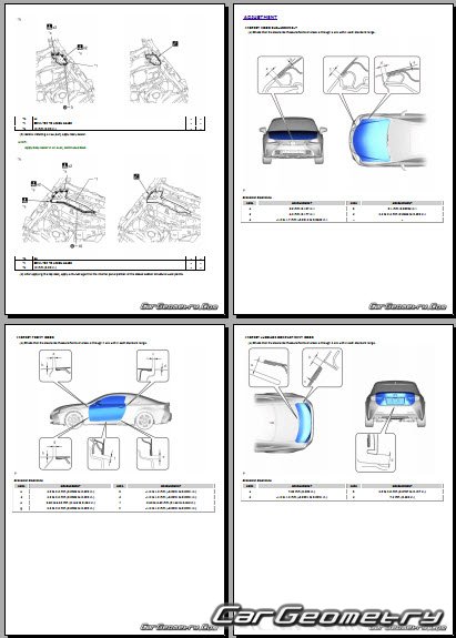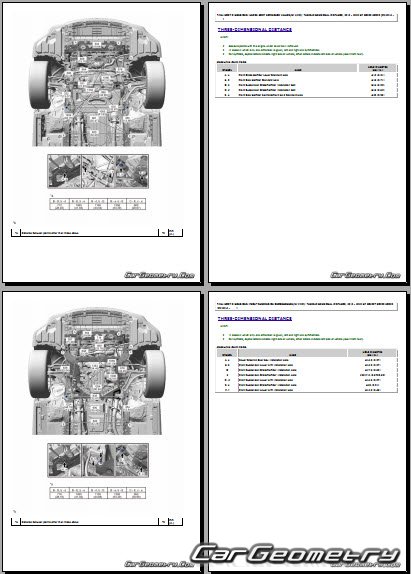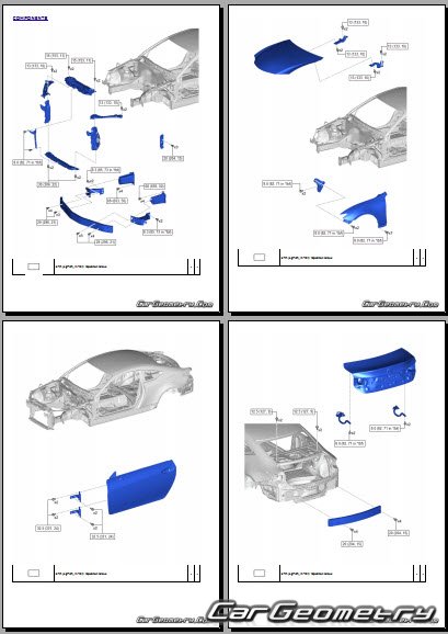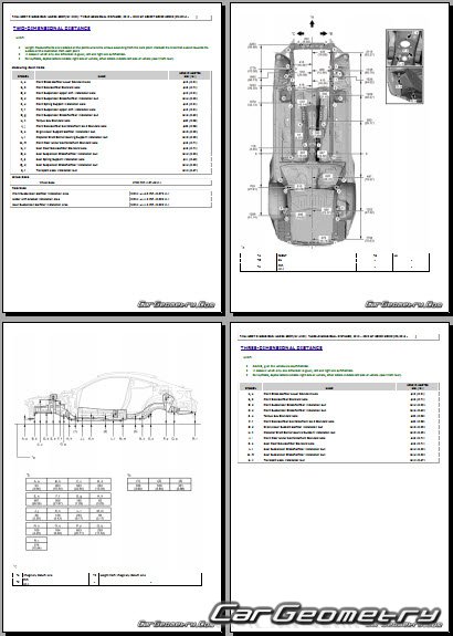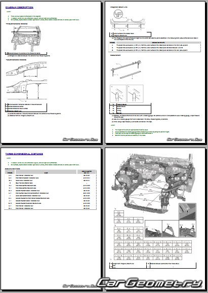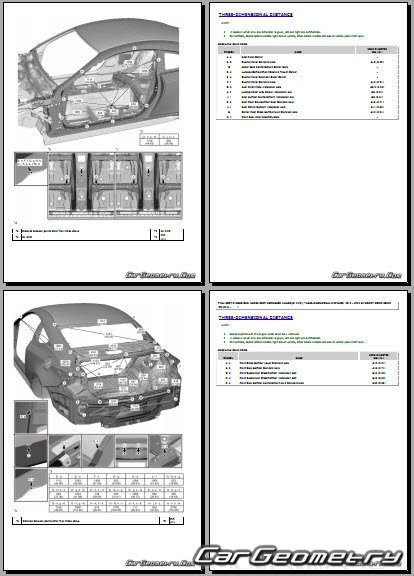 Заводское руководство на английском содержит размеры кузова Lexus RC200T, RC300, RC350 (ASC10, GSC10, GSC15, GSC16) 2021-2025 и включает описание замены различных элементов кузова и кузовные размеры, контрольные точки геометрии кузова Лексус RC 350, RC200T, RC300 рестайлинг.