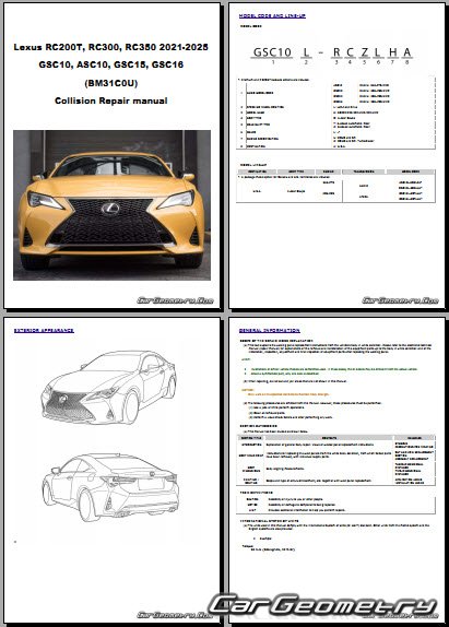Lexus RC200T, RC300, RC350 (ASC10, GSC10, GSC15, GSC16) 2021-2025 Collision Repair manual