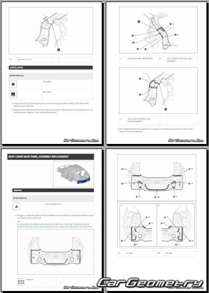 Скачать Заводское руководство по ремонту кузова и размеры кузова