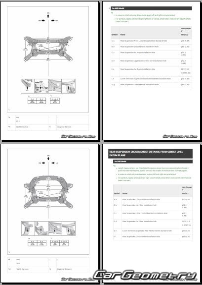 Кузовные размеры для восстановления геометрии кузова автомобилей Toyota C-HR+ (XEKM10 XEKM15) 2025-2030 Collision Repair Manual. С помощью этих данных осуществляется проверка геометрии кузова, с последующей рихтовкой поврежденных частей Тойота C-HR плюс.