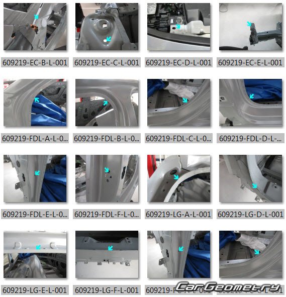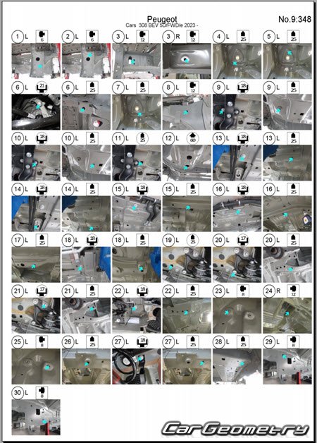 Выборка из стендовых баз по Peugeot e-308 (EP51) 2022-2025 Body dimensions, стендовые размеры кузова и контрольные точки геометрии электрической версии Пежо е308.
