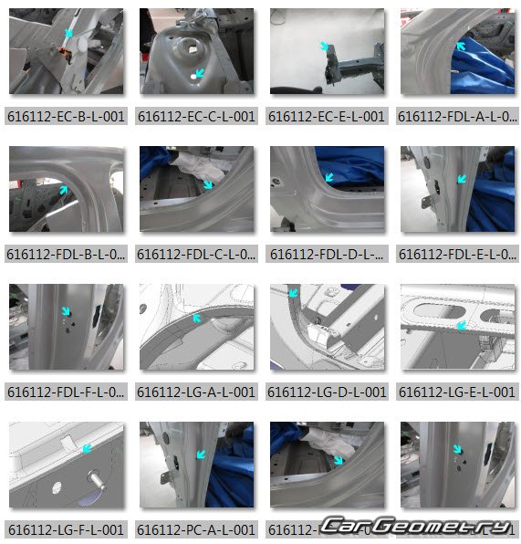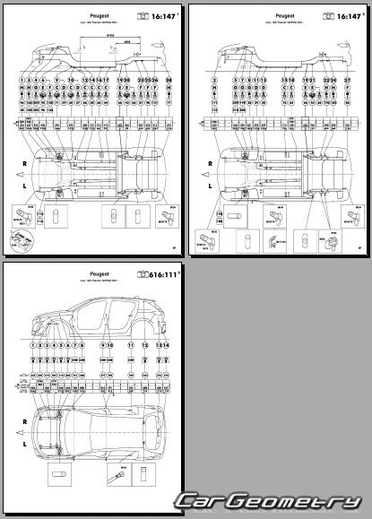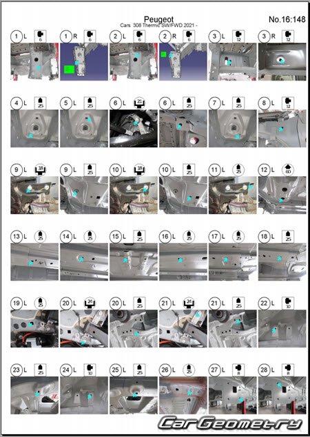 Выборка из стендовых баз по Peugeot 308 с 2021 (5DR, SW Wagon) Body dimensions, стендовые размеры кузова и контрольные точки геометрии Пежо 308 в кузове хетчбек и универсал.