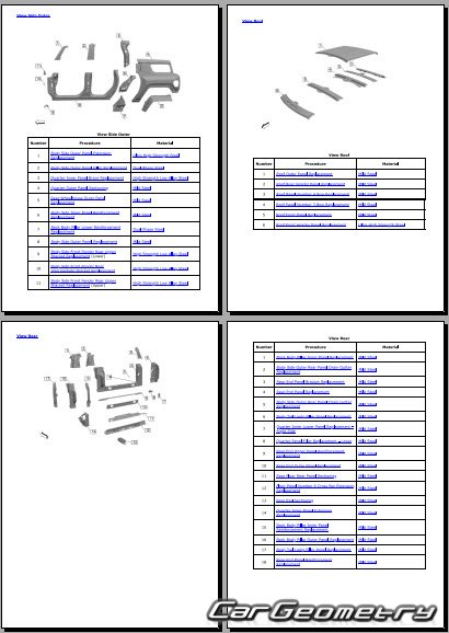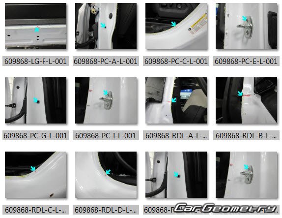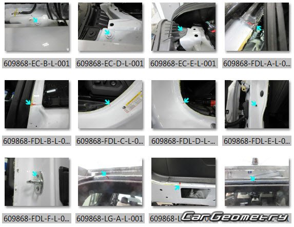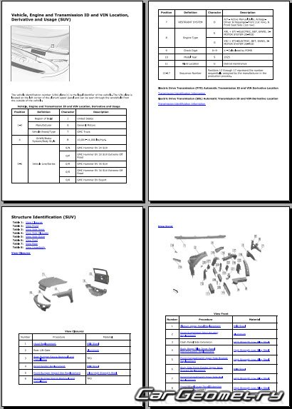 Информация по геометрическим размеры кузова GMC Hummer EV SUV: контрольным точкам; изображения сечений кузовных элементов; применяемым материалам; рекомендации по применимым типам, методам, материалам и местам сварки; места и материалы для нанесения шовных, звукоизолирующих, антикоррозионных мастик; участки и направления резки элементов для последующей установки новых; типы материалов интерьера, обозначение и расшифровка.