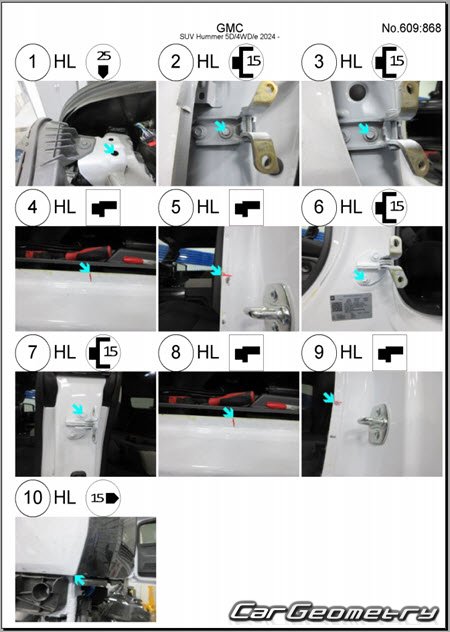 Руководство по кузовным работам GMC Hummer EV SUV 2024-2027 Body Repair Manual на английском языке содержит 665 страниц исключительно полезной и необходимой информации для мастеров, которые проверяют геометрию кузова после ДТП и хотят выполнить восстановление кузова Джи Эм Си Хаммер EV вагон согласно рекомендациям завода изготовителя.