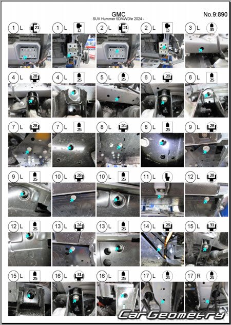 Заводское руководство содержит размеры кузова GMC Hummer EV SUV 2024-2027 и включает описание замены элементов, кузовные размеры, контрольные точки геометрии кузовов Джи Эм Си Хаммер EV в кузове вагон.