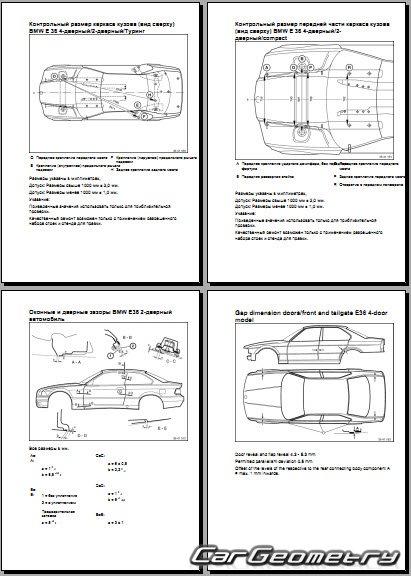 Выборка из заводской документации и различных стендовых баз по BMW 3 Series (E36) 1994-2000 Body dimensions, стендовые размеры кузова седан, вагон и контрольные точки геометрии БМВ Е36.
