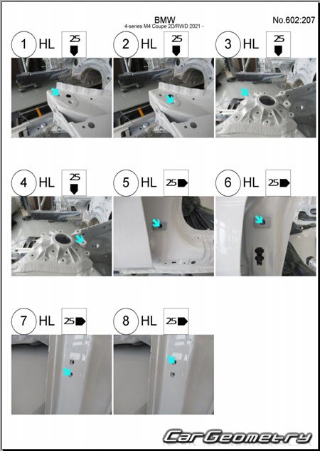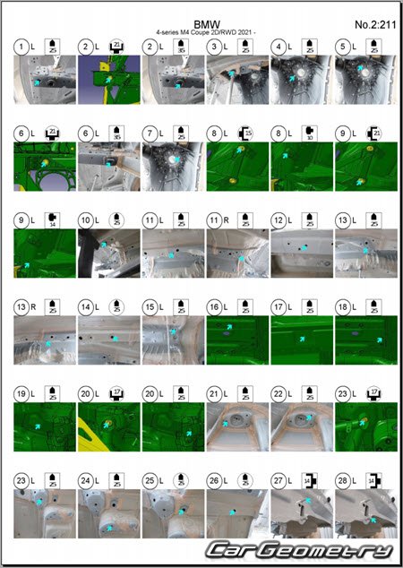 Выборка из заводской документации и различных стендовых баз по BMW M4 Coupe (G82) 2021-2026 Body dimensions, стендовые размеры кузова и контрольные точки геометрии БМВ Г82 Купе.