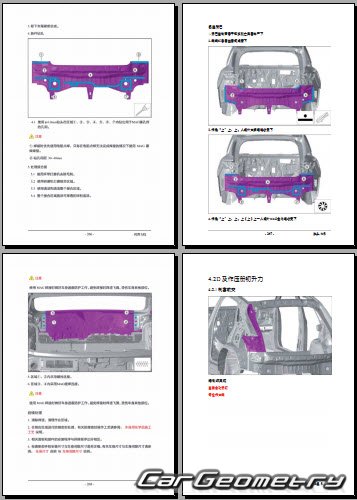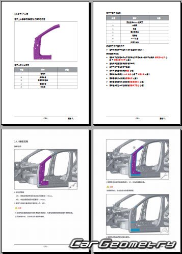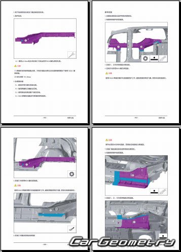 Руководство по кузовным работам AITO M5 2022-2027 Body Repair Manual на китайском языке содержит 395 страниц исключительно полезной и необходимой информации для мастеров, которые проверяют геометрию кузова после ДТП и хотят выполнить восстановление кузова Аито М5 согласно рекомендациям завода изготовителя.