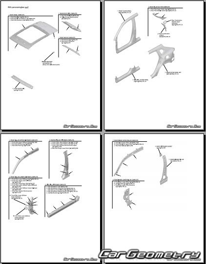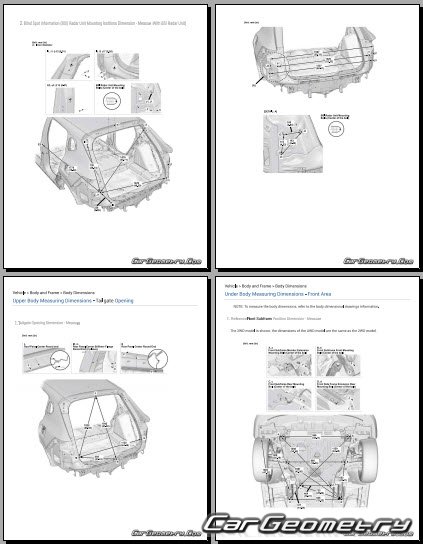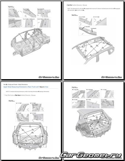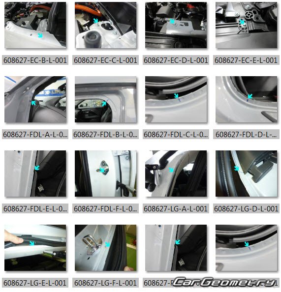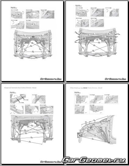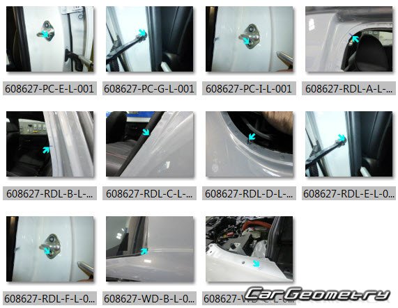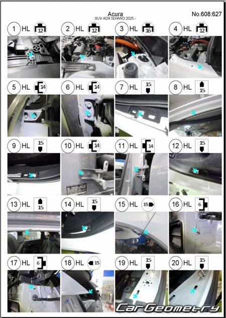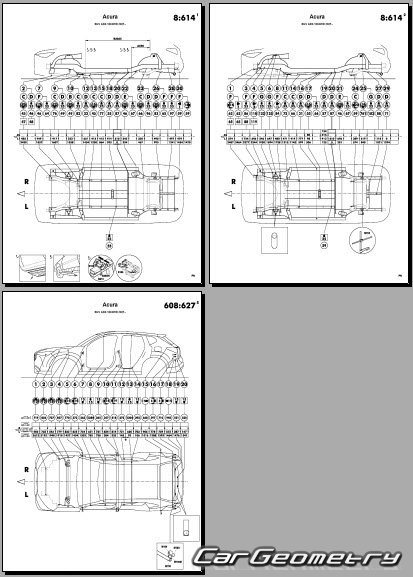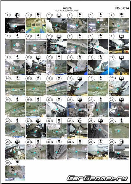 Кузовные размеры для восстановления геометрии кузова Acura ADX 2025-2030. С помощью этих данных осуществляется проверка геометрии кузова, с последующей рихтовкой поврежденных частей Акура ADX.