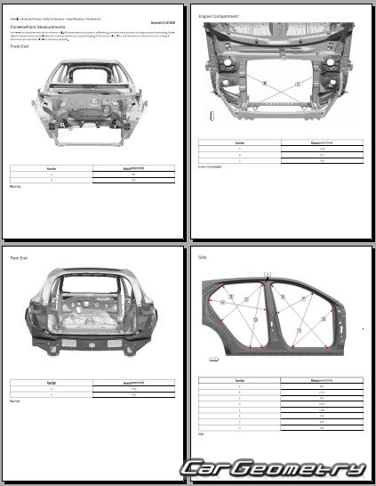 Заводское руководство по ремонту кузова Buick Envision с 2024 включает кузовные размеры, контрольные точки геометрии кузова SUV. С помощью этих данных осуществляется проверка геометрии кузова, с последующей рихтовкой поврежденных частей Бьюик Инвисион.