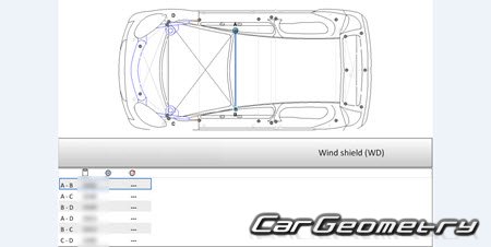 Кузовные размеры для восстановления геометрии кузова автомобилей Citroen C1 2005-2013 (3DR, 5DR). С помощью этих данных осуществляется проверка геометрии кузова, с последующей рихтовкой поврежденных частей автомобилей Ситроен С1 первого поколения.