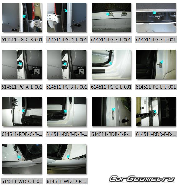 Кузовные размеры для восстановления геометрии кузова автомобилей Mercedes Sprinter VAN (Type 906) 2006–2016. С помощью этих данных осуществляется проверка геометрии кузова с колесной базой 3250, 4325 и 3665мм , с последующей рихтовкой поврежденных частей автомобилей Мерседес Спринтер первого поколения.