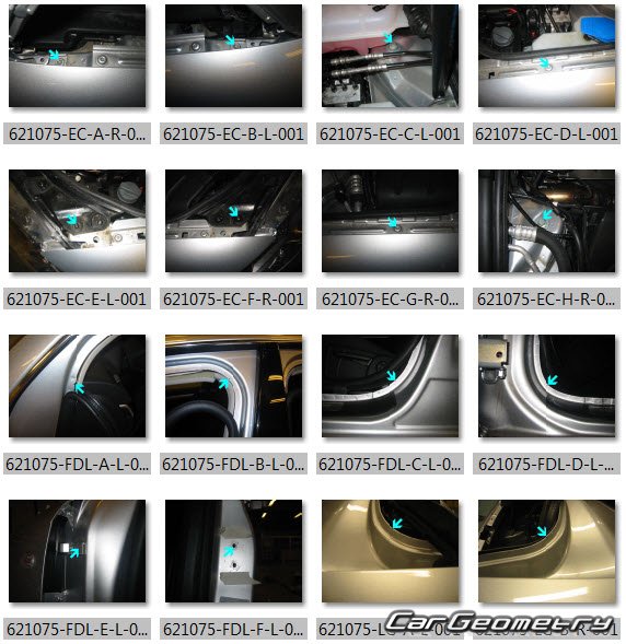 Кузовные размеры для восстановления геометрии кузова автомобилей Audi A4 Sedan (B7,8E) 2002–2008 . С помощью этих данных осуществляется проверка геометрии кузова седан, с последующей рихтовкой поврежденных частей автомобилей Ауди A4 и A4 Quattro.
