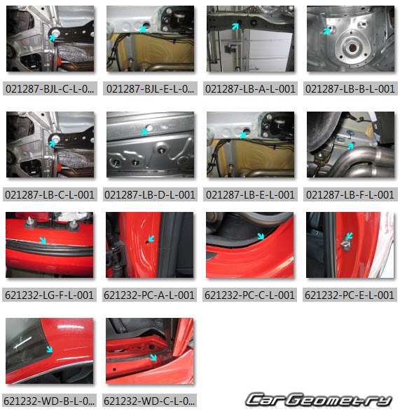 Кузовные размеры для восстановления геометрии кузова автомобилей Audi A3 (8V) c 2012. С помощью этих данных осуществляется проверка геометрии кузова 3DR HATCHBACK, с последующей рихтовкой поврежденных частей автомобилей Ауди A3.