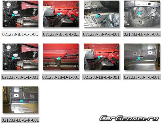 Кузовные размеры для восстановления геометрии кузова автомобилей Audi A1 (8X) 2010-2018 (3DR, 5DR Hatchback). С помощью этих данных осуществляется проверка геометрии кузова, с последующей рихтовкой поврежденных частей автомобилей Ауди A1.