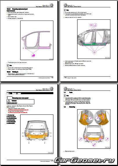 Руководство по кузовному ремонту VW Sharan (Typ 7N) 2011-2017 Body Repair Manual 225 страниц на английском языке. Данный сборник содержит огромное количество исключительно полезной и необходимой информации для занимающихся кузовным ремонтом самостоятельно и владельцев фирм по кузовному ремонту Фольксваген Шаран.