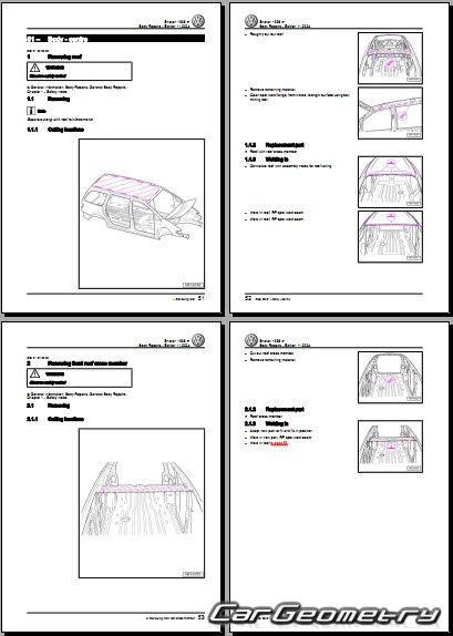 Кузовные размеры для восстановления геометрии кузова автомобилей Volkswagen Sharan (Typ 7M) 2004-2010. С помощью этих данных осуществляется проверка геометрии кузова, с последующей рихтовкой поврежденных частей автомобилей Фольксваген Шаран первого поколения.