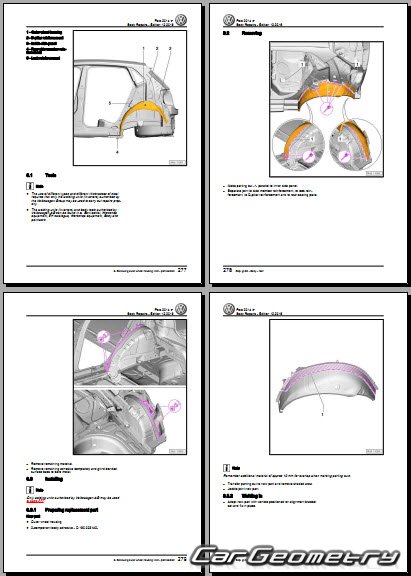 Руководство по кузовному ремонту VW Polo (Typ 6R) 2009–2018 Body Repair Manual 279+287 страниц на английском языке. Данный сборник содержит огромное количество исключительно полезной и необходимой информации для занимающихся кузовным ремонтом самостоятельно и владельцев фирм по кузовному ремонту Фольксваген Гольф.